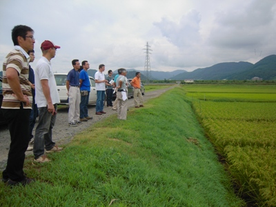 8月20~21日、県内蔵元の杜氏さんの酒米研究グループ”研醸会酒米研究班”のメンバーが庄内地方の酒米ほ場を視察しました。県工業技術センター、アスクをも加え、総勢17名です。