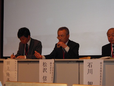 シンポジウムでは、パネラーとして松沢会長が酒米研究会がGAP導入に至った経過について「33名の生産者が自ら主体となって進めたこと、これからの酒米づくりの方向として、GAPは当然という意識の高まりがあったこと」などを報告しました。