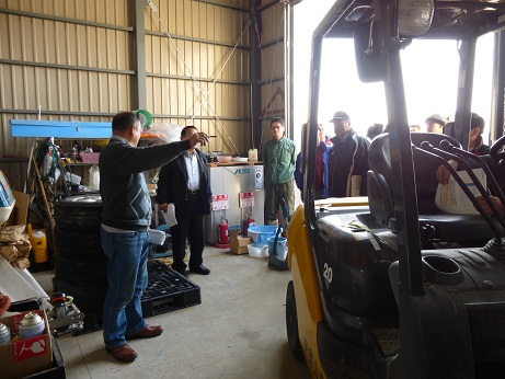 とは言っても、研修内容はハードスケジュールです。①「農業者にとってGAPとはなにか」の座学で始まり、②農場では講師と奥山・山口さんが質問形式で土壌・作物・農薬管理などの実態と確認、③作業舎、倉庫、格納庫の点検、④②~③による農場評価表の作成、⑤評価に対する対応策と改善策の討議などなど・・・。