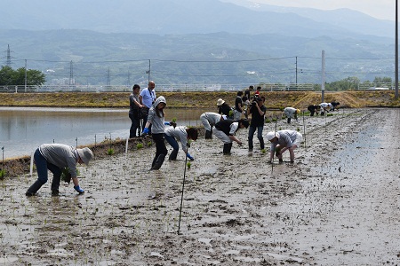 5月15日、アスク恒例の社員による試験田の田植えを行いました。ここ数日続いた強い風も治まり、絶好の田植え日和に恵まれました。これも、社員の日ごろの精進のたまものでしょうか。