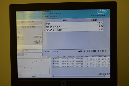 品質調査室では、これらサンプルについて、酒造好適米としての望ましい形質、①粒が大きく豊満なこと、②心白が中央に鮮明にあり大きすぎないこと、③胴割れ粒歩合が低いこと、④タンパク含有率が低いことなどを専用の機器で調査します。