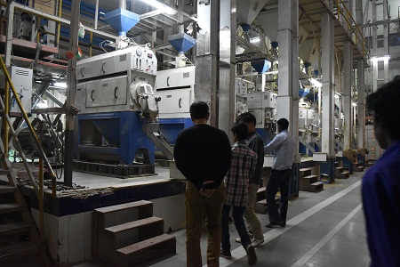 田植え終了後、Burdwan Galsi にある大規模の精米工場を訪れました。すでに夕方でしたが、工場内は従業員で活気にあふれ、トラックで運び込まれた50kg近い麻袋を頭に載せ、巧みに倉庫へと運び込んでいます。