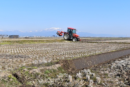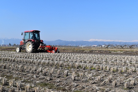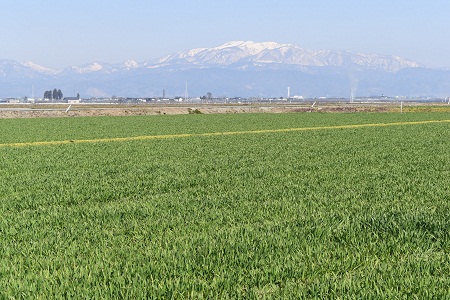 ここ数日、山形は春の陽気が続いています。田んぼではトラクタが畔ぬりに エンジン音を響かせています。麦の緑も一段と濃くなってきました。 いよいよ春本番、残雪に輝く山々を一望しながら米づくりの作業に追われる 日々が続きます。山形ならではの春の原風景です。