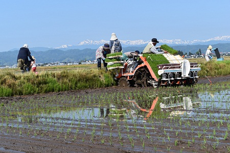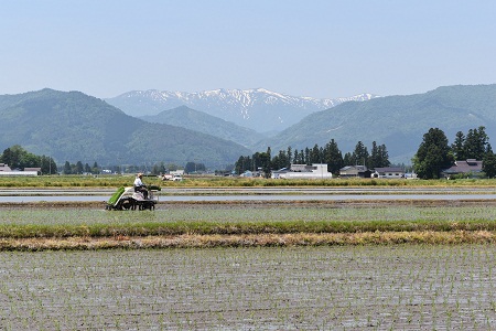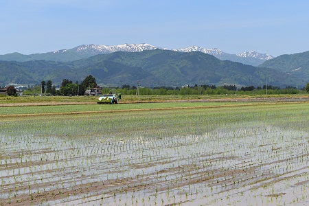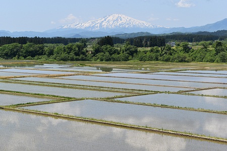 5月21~22日、県内は絶好の田植え日和、田んぼの水面に映える残雪の山々を眺望しながらの田植えの光景は、山形の初夏の原風景とも言えるでしょう。そして、”おいしい山形米”の源でもあります。 残雪の山々が連なる朝日連峰(天童市寺津にて) 雄大な鳥海山を眺望(酒米の里金山にて) 霞む飯豊山(飯豊町にて) 新緑がまぶしい朝日連峰葉山(長井市にて)