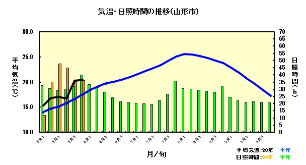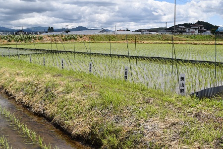 上の気象図にみられるように、山形の5月下旬の気温(黑の折れ線)は平年より3~4℃高く経過しました。この高気温は田植えした苗の活着には最高のプレゼント、のみならず、タネもみを直接播く直播にも好影響を与えています。この指とまれの平吹正直さんが挑戦している直播は、近年にない良好な苗立ちを確保、田植えをしたようにも見えます。
