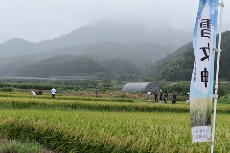 雪女神は、出穂が総じて8月3日とやや早まり、その後好天に恵まれたことか ら、平野部、中山間部とも、穂は黄色く垂れ、一様にきれいな稲姿を見せてい ます。雪女神の特性でもある高品質が期待できそうです。