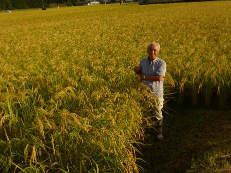 9月26日、蔵元、生産者、JAみのり、全農兵庫、多可町、そしてアスクの関係者が集い、村の成長ぶりを見て回りました。例年より丈は短く、穂の数は少ないとのこと。”いつもならコケているのに、今年の山田はよう立っとる”、とは酒米づくりのベテラン吉田継夫村長の談。曼珠沙華と妍を競うように鮮麗な熟色の穂に確かな手ごたえを感じます。刈り取りは、10月中旬と見込まれていますが、台風が襲来しないよう願うばかりです。