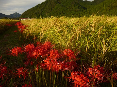 曼珠沙華には”また逢う日を楽しみに”という花言葉があるとか。すっかり顔なじみになった村民に見送られながら、一層絆が深まった山田錦発祥の地の夕暮れでした。