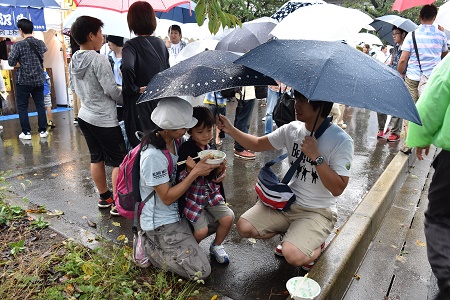 雨の中、"日本一芋煮会"