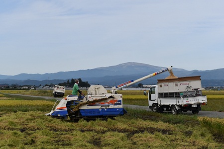 山形はここ数日は好天に恵まれ、長雨で遅れていた稲刈りは急ピッチで進んでいます。