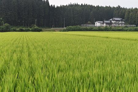 頂上が冠雪した蔵王(朝日町大谷) 棚田から霞んでみえる大朝日岳(朝日町椹平)