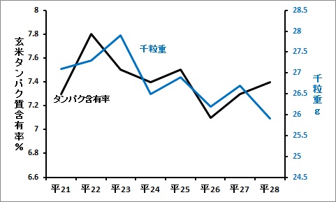 玄米タンパク質含有率:7.4%(7.3%) ( )内は平25~27年の平均値