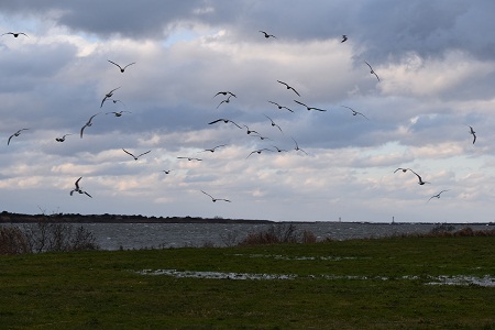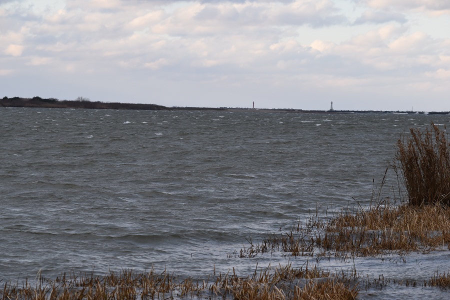 強風が吹きすさぶ最上川河口(12月10日)