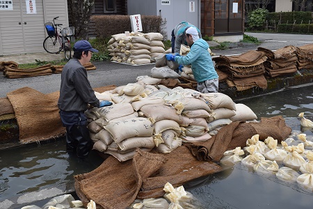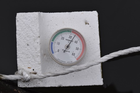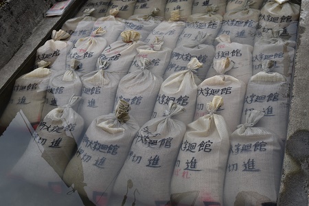 水温は32℃ 麻袋には生産者の住所・氏名・品種名 芽だしを終えたタネもみを持ち帰る