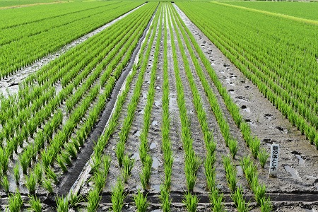 今日の山形はむし暑く、最高気温31℃、週末からは梅雨らしい天気が続くと予報されています。稲の生育は一段と緑を増し、逞しくなってきました。葉の数は9枚目に達しています。この頃からの生育の特徴は、これまで増え続けた茎は穂を着ける茎(有効茎)と穂を着けない茎(無効茎)とに分かれることです。7月に入ってから出現する茎の殆どは無効茎になると言ってよいでしょう。このため、無効茎の発生を抑え、有効茎歩合(総茎数に対する有効茎の割合)を高めるのが、米づくりのポイントの一つになります。一方、湛水している田んぼは気温の上昇とともにワラの腐熟で硫化水素が発生し、根の生長を妨げます。