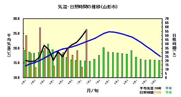 暑い!山形市の昨日の最高気温が36.4℃、県南の高畠町は36.7℃で全国で4位という猛暑に見舞われました。ここ数日最高気温35℃近い真夏の暑さが続いています。試験田からの蔵王も霞んで見えます。