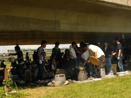 抜けるような青空へ市東部を流れる馬見ヶ崎川の河原のあちらこちらから煙が立ち上ります。山形の秋の風物詩芋煮会です。芋煮会がいつの頃から盛んになったかは定かではありませんが、明治・大正時代、河川工事の工夫らが食べたのが始まりという説もあります。今は、職場、町内会、子供会の仲間、家族連れなどが河原に集い、鍋を囲みます。芋煮会は食べながら、飲みながらお互いの絆を強めあうひと時でもあります。