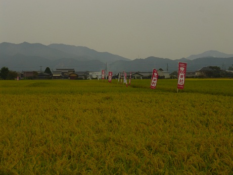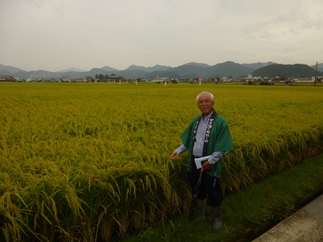 秋田村は多可町中町の酒米生産者50数名が”秋田の蔵元に高品質の山田錦を”との熱い思いで作り育む山田錦の田んぼの愛称名で、開村して7年目になります。9月27日、秋田村には蔵元、生産者、JAみのり、全農兵庫、多可町、アスクの関係者が集い、恒例となっている山田錦の生育状況を見て回りました。”天気に恵まれ、成育・登熟は順調、コケもせず、品質は期待できる”、部会長の吉田継夫さんの力強い説明にまずは一安心。