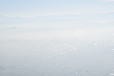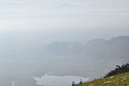 白竜湖からの飯豊連峰(かすかに上に見える) 濃霧の置賜盆地