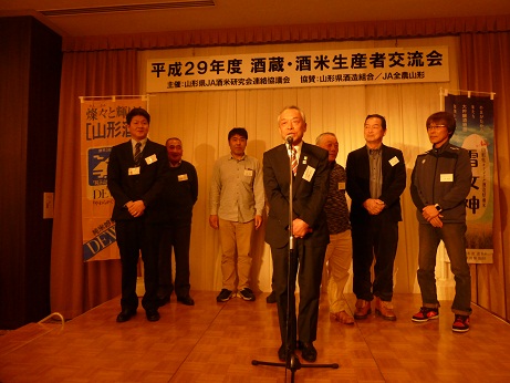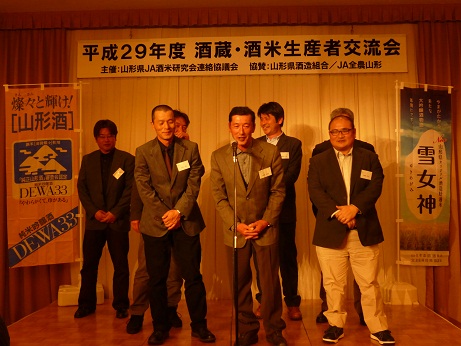 フォーラム終了後は恒例になっている蔵元と生産者との交流会、酒造りと米づくりが雪女神が醸す酒を酌み交わし、絆を強めあいました。山形の酒の評価が高まっている原点がここにある、その思いを一層深く感じた交流会でした。