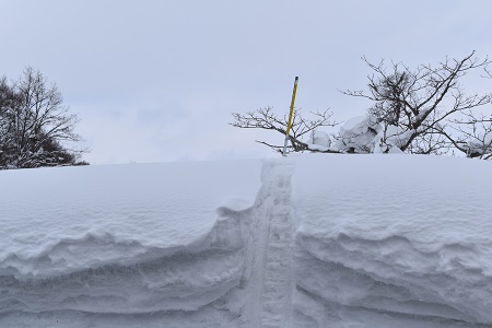 積雪を測る7mのスケール、黄色い部分が6m 雪回廊(志津にて)