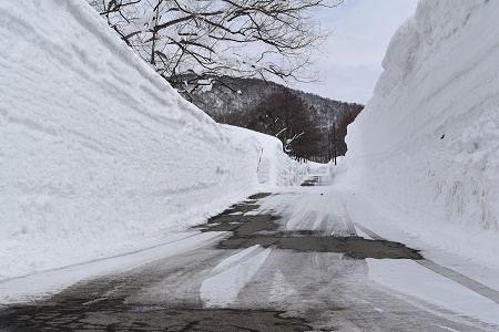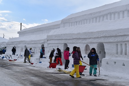 月山の麓志津温泉、2月23日の積雪は520cm、最高時には積雪を測る700cmの観測スケールは埋まるほどだったとのこと。この豪雪を逆手にとって楽しもうとするイベントが「雪旅籠(はたご)」です。この日は県内外から集まった大学生達が、電動ノコギリなどを使い雪像を制作していました。夜には、雪像に灯された2000本ものろうそくの明かりが幻想的な光景を浮かび上がらせます。なお、3月2~4日にも開催されますので、山形の晩冬の景色を楽しんではいかがでしょうか。