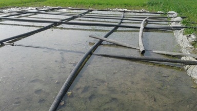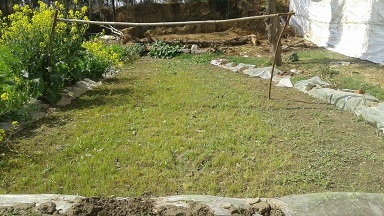 第1点が苗代に水を溜め、漏水を防ぎ苗を保温すること。それには古ビニールシートを畦畔脇に30㎝ほど埋め込む。