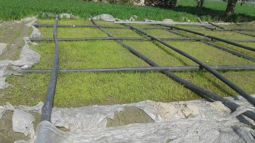 現地の農家は冬季に米づくりをした経験はないという。小麦の収穫後のバスマティ栽培は雨季のもっとも暑い時期に入ります。代掻きした水苗代にタネを播けば、短期間で芽がでるでしょう。”水で苗を保温する”、という考えが思い浮かばないのも蓋し当然かもしれません。