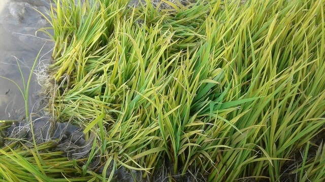 2月22日、パソコンに田植えの写真が送られてきました。霧と低温に痛めつけられましたが、逞しく育った苗は葉色淡く下葉の枯死が見られるものの3葉ほどに生長しました。田植えの適期です。今回の田植えは試作のため小面積です。生育進度、出穂期や刈り取り期を、そして何よりも品質・食味を確認するのが主目的です。
