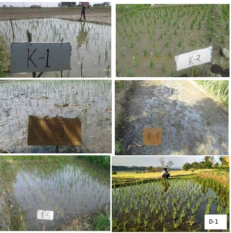 生育状況は、写真のように試験圃場でそれぞれ異なりますが、草丈は平均すると20cm。メモには、K1~K3、K5圃場はSatisfactory growth of paddy plants、 K4圃場はRice plant tip becomeing dry & yellow とのことです。なお、カイタルより北のデヘラドゥ-ンの棚田での生育(D1)はK1~K5よりは良好に見えます。Good growth of paddy plantsとメモされています。