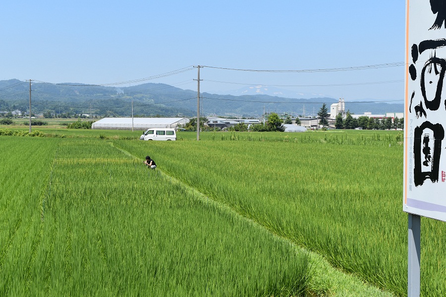 田んぼに照りつける太陽、暑い日が続いています。この暑さで、アスク試験田の酒造好適米早生品種は穂が出そろいました。平年より、美山錦が2日、羽州誉が2日、龍の落とし子が2日早い出穂です。中生群では、雪女神が27日出穂期となり、出羽燦々、山酒4号(玉苗)、酒未来が28~29日、出羽の里は少し遅れて30~31日と見込まれます。いずれの品種も2~3日早まるようです。