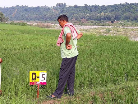 デヘラドーンの棚田には青色の機器が設置されていますが気水温を測定するものでしょうか。後日確認します。現地では、冬作の失敗を繰り返さないため、カイタルの田んぼへはもちろんのこと、カイタルから5時間もかかるデヘラドーンの田んぼに頻繁に足を運び、調査や農家との話し合いをしていることがわかります。この取り組みに「はえぬき」が見事応えてくれることを期待しています。