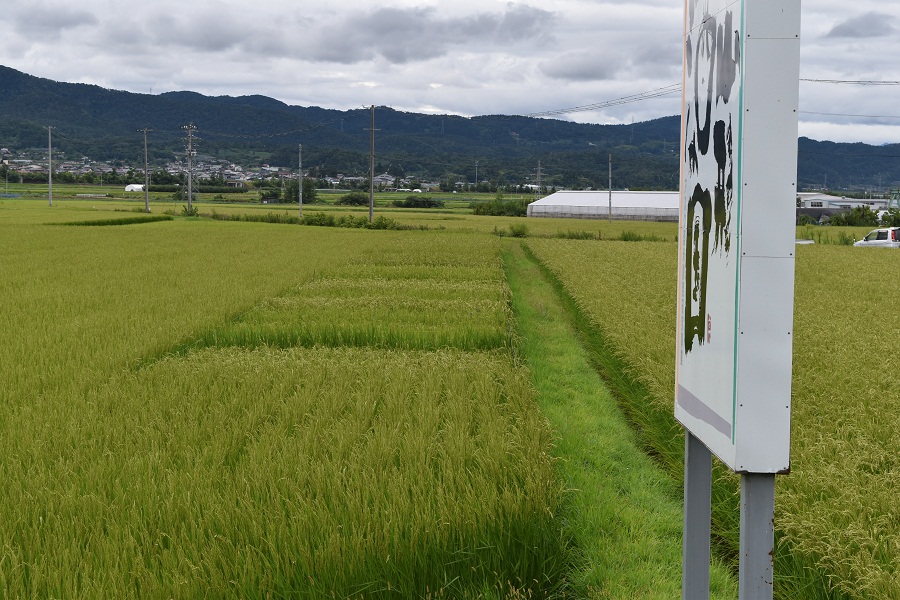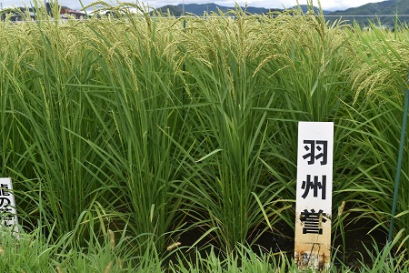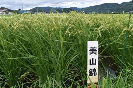 酒造好適米早生品種、登熟順調に進む アスク試験田の酒造好適米品種は出穂期が平年より3日ほど早まったこともあり、登熟も早く、穂波が吹き渡る風に揺れています。試験田周辺の田んぼの穂も色づいてきました。天気予報によれば、お盆中は暑さが戻るとのことですが、稲穂はすでに初秋を迎えています。