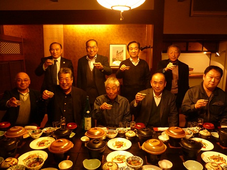 雪模様の天気も一段落した12日夕方、酒造好適米”山酒4号(玉苗)”の生産者”かほく酒米研究会”が寒河江市のしにせ”陣屋” で総会を開きました。会には、奥山喜男会長ら生産者、研究会を支援する山崎商事、山米商事、アスクが集い、山酒4号(玉苗)の作柄などについて語り合いました。