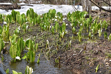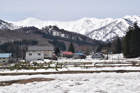 朝日連峰の残雪がまぶしく輝く 雪解けの沢には水芭蕉が咲き誇る(西川町大井沢) 月山、朝日連峰の麓と西川町大井沢に遅い春が訪れました。清冽な雪解けの水が流れる寒河江川、雪解けの沢には水芭蕉、カタクリの花が咲き誇り、山里は遅い春の訪れとともに令和の時代を迎えました。