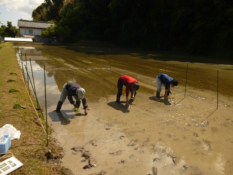 酒米”愛山”、弊社ではASK愛山と呼んでいます。その愛山の原々種を社員が兵庫県三木市吉川町上中の谷郷昇さんの田んぼに田植えしました。