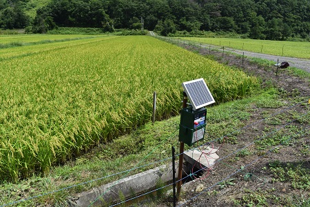 イノシシ対策の電気牧柵 雪女神(米沢、新藤酒造店)