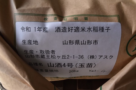 アスクが取り扱っている酒造好適米品種は、「羽州誉」、「龍の落とし子」、「山酒4号」、「酒未来」、「改良信交」、「ASK愛山」、そして「キヨニシキ」。「はなの舞」の原々種(令和2年原種生産用種子)と原種(同生産者用種子)、これ以外にも「酒の華」、「雪化粧」など、実に多様です。種子生産を一手に担っているのが「この指とまれ」の山口泰弘、平吹正直さんです。15年目になるベテラン。