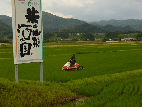 作溝作業は、手作業の時は泥だらけになりながらの重労働でしたが、今は田植え機を改良したもの、バイク式乗用型のものなど機械化されています。とはいえ、作溝は暑い中での作業、楽ではありません。それでも農家がこの作業を励行するのは、良質米づくりには欠かせないからです。