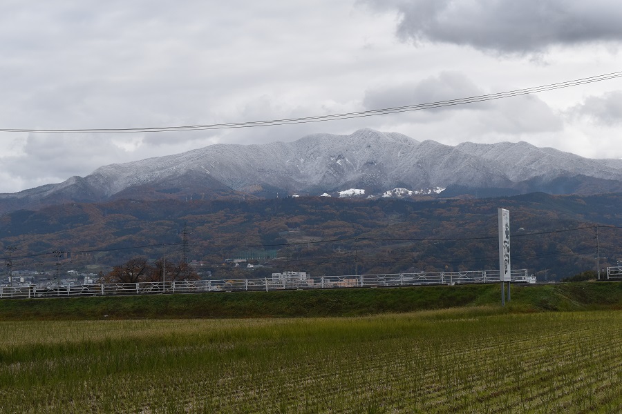 蔵王連峰は雪景色(11月11日、アスク試験田から)